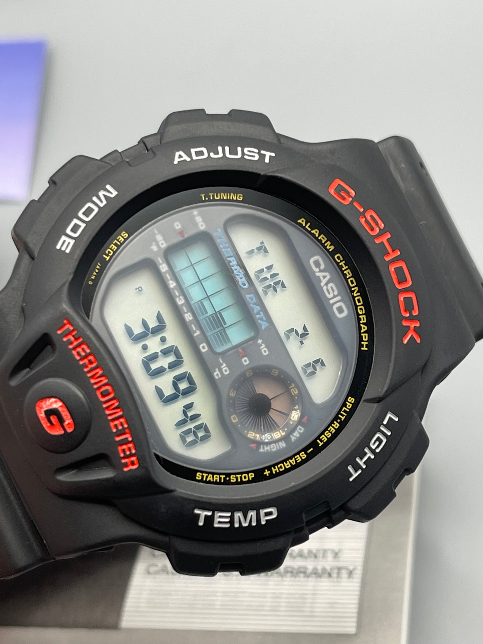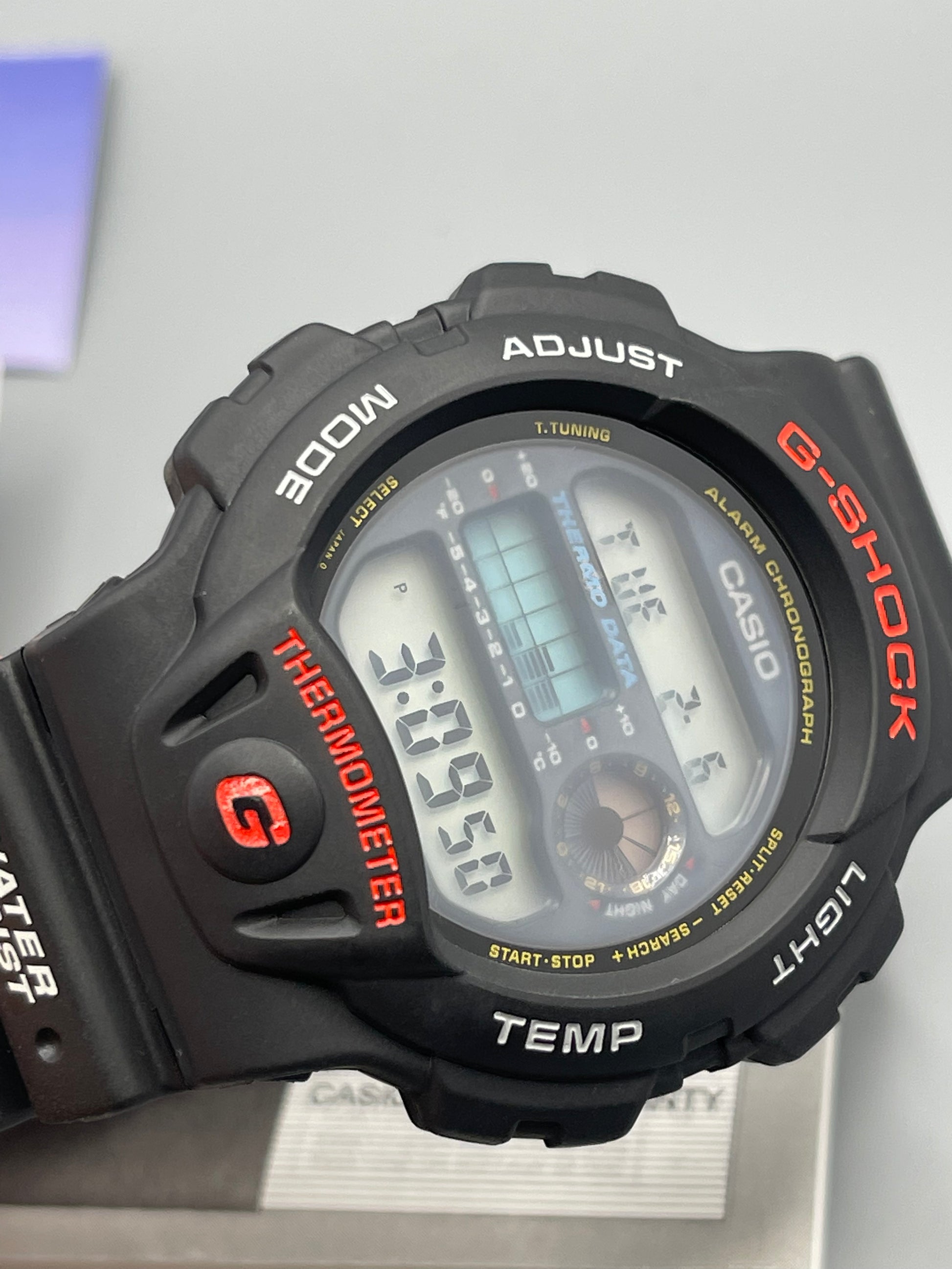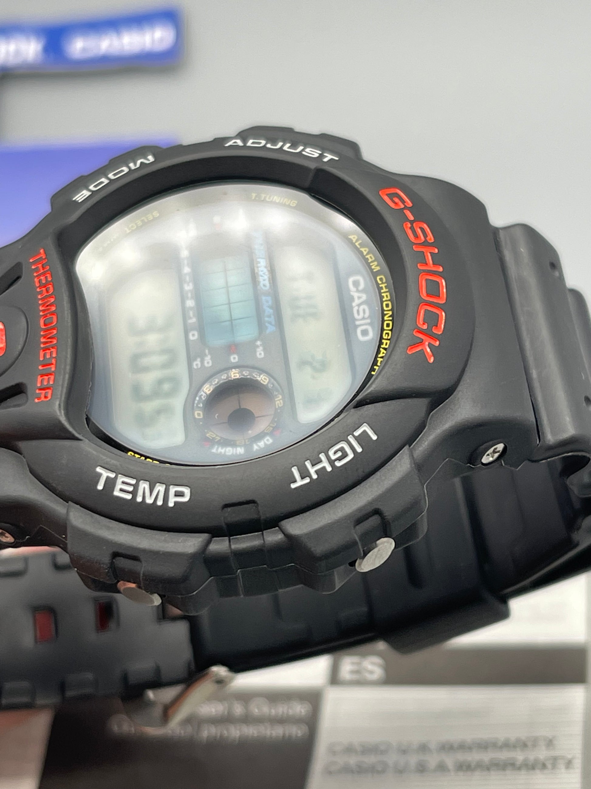 This watch came from a closed down casio shop in the early 90s, and the old stock was put in storage. due to storage it has got a slight mist (only slight) or something inside the screen, but all works, and may fad in time. we have over 50 and they are all the same.This watch is in fantastic excellent condition, it will come in a casio display box, all works perfectly